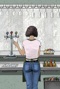 Warble's Bar is a fictional bar in Brooklyn, NY and is the centre of the action in the new novel titled At Warble's Bar. Originally a traditional pub, a member of staff came across a black cat called Warble. Believing a large win on the lottery was due to luck from the cat, she purchased the bar and changed the name to Warble's Bar. A picture of the cat in an ornate frame looks out across the bar. The latest owner decided to modernise the decor, but kept the name and cat picture. The bar is now all marble and glass, with a bright blue neon sign in the long glass frontage declaring it as 'WarblesBar.com'.